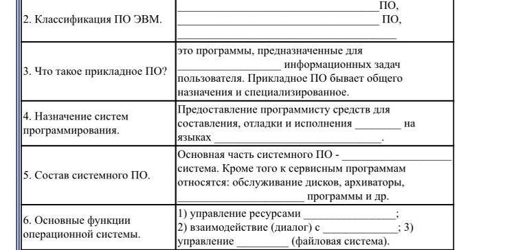 2) системное ПО, прикладное ПО, системы программирования.