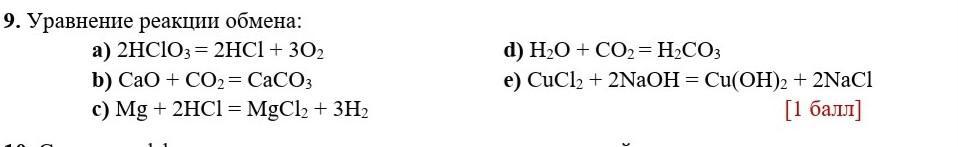 b) CaO + CO2 = CaCO3 e) CuCl2 + 2NaOH = Cu(OH)2 + 2NaCl