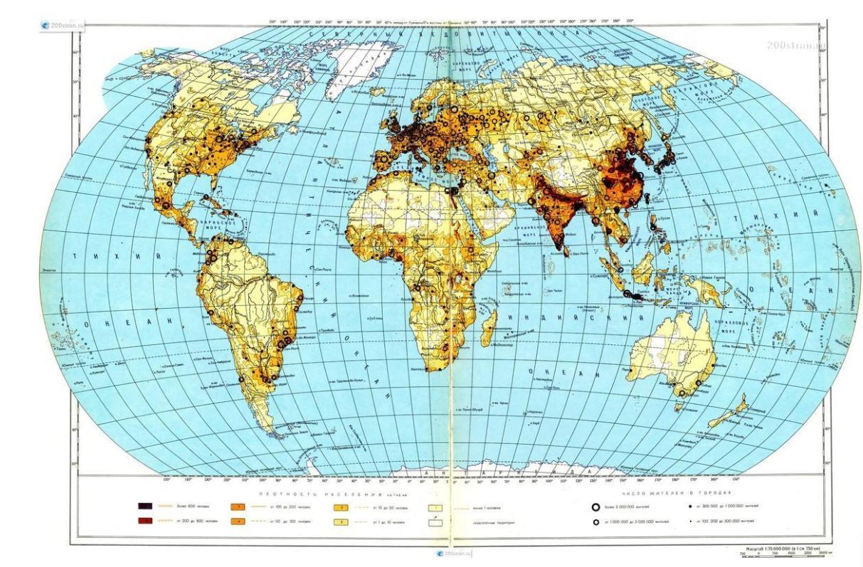 Во-вторых это рельеф местности, поскольку большинство населения Земли селится на равнинных территориях недалеко от рек, озёр, морей или океанов.