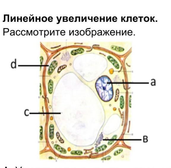 В. Определите точный размер органоида под буквой d, если линейное увеличение изображения 1278. Показать решение. Ответ записать в мкм