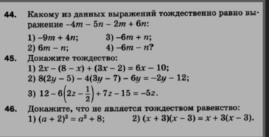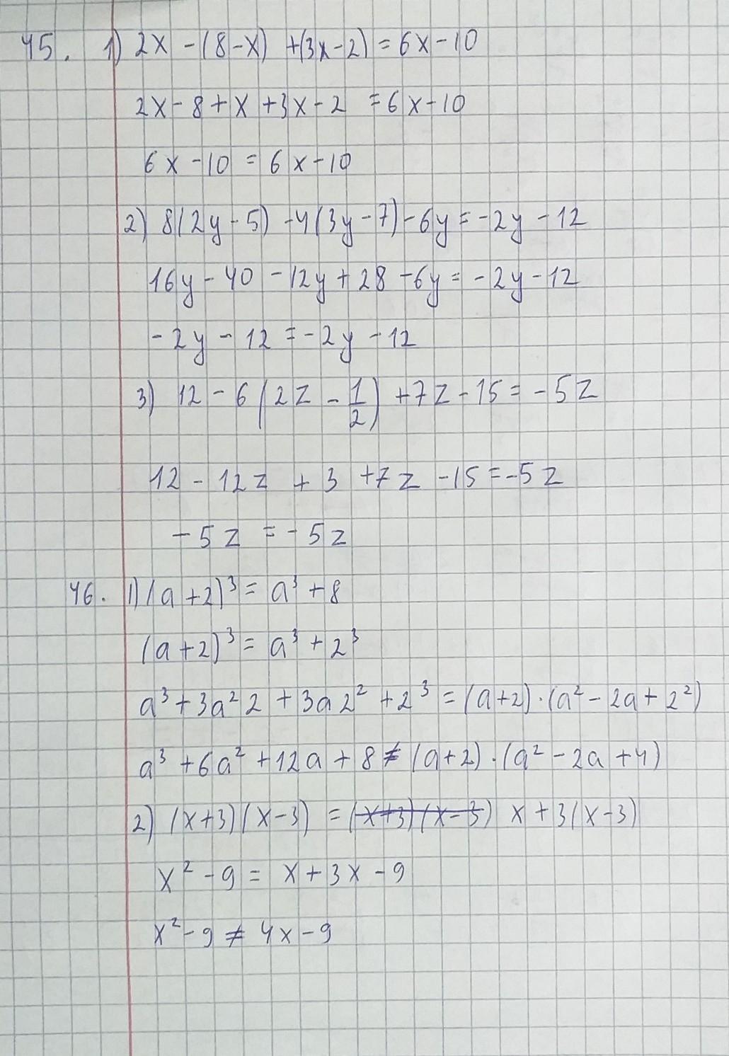 в 46 зачеркнутый знак (=) означает, что равенство не являются тождеством. не знаю, как у вас это оформляют, поэтому показала это так.