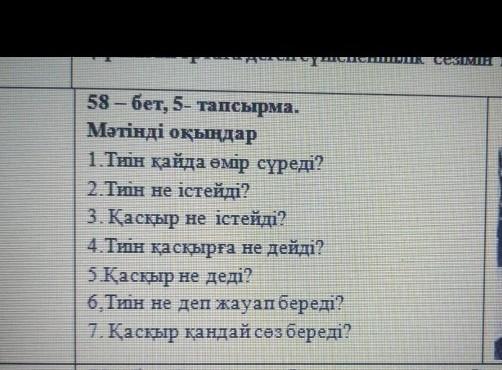 6. Қасқыр сен залымсың. Сен бәрін қорқытасың. Сенен барлық аң қорқады. Ешкіммен сөйлеспейсін. Сені ешкім жақсы көрмейді. Сондықтан әрқашан ашуласын.