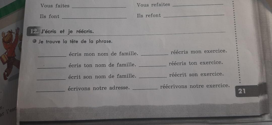 3. Il écrit son nom de famille. Il réécrit son exercice.