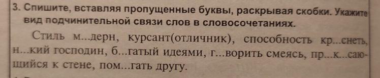 Стиль модерн - согласование, способность краснеть - примыкание, низкий господин - согласование, богатый идеями - управление, говорить смеясь - примыкание, прикасающийся к стене - управление, помогать другу - управление.