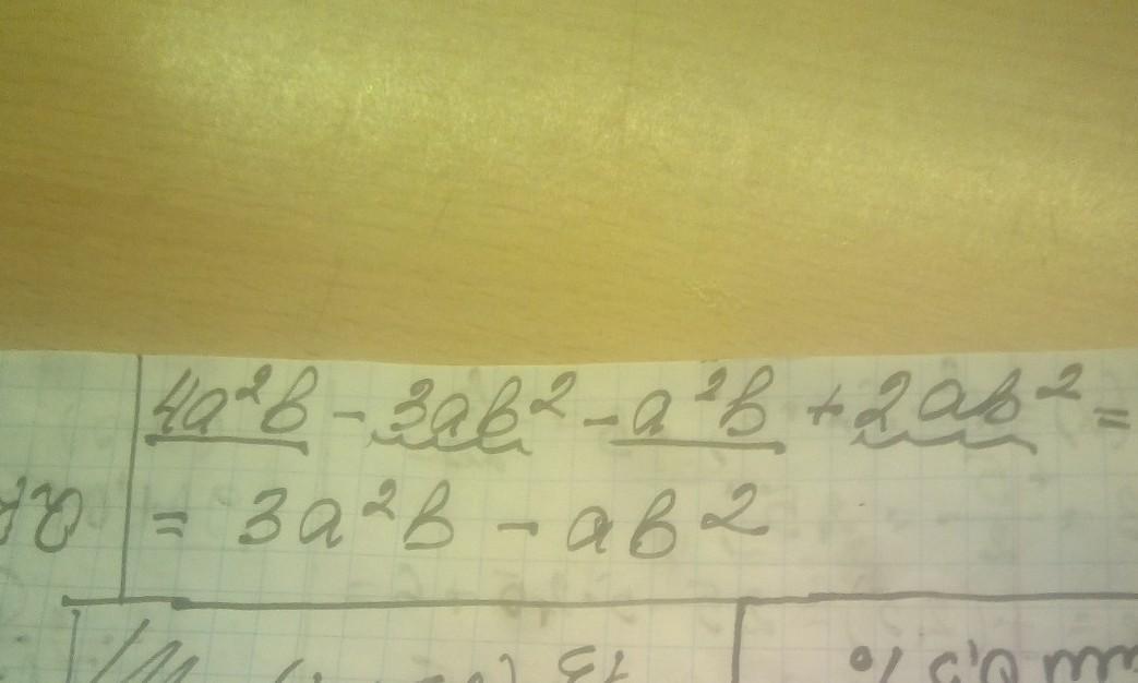 4а²b-3ab²-a²b+2ab²=3a²b-ab²