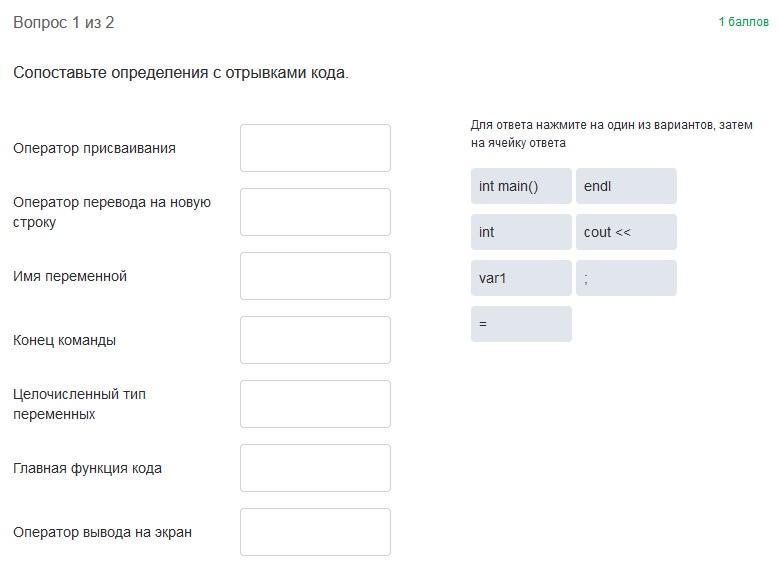 Оператор вывода на экран: «cout << »