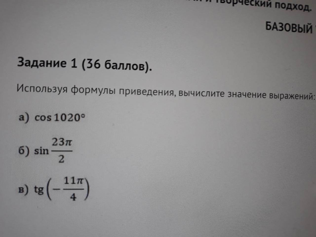 cos1020° = cos(-60° + 1080°)= cos(-60° + 3·360°) = cos60° = 0,5