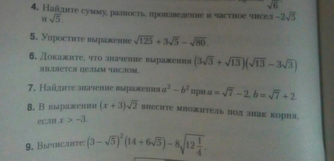 7. если а=√7-2 и b=√7+2, то a²-b²= (√7-2)²-(√7+2)²=11-4√7-11-4√7=-8√7