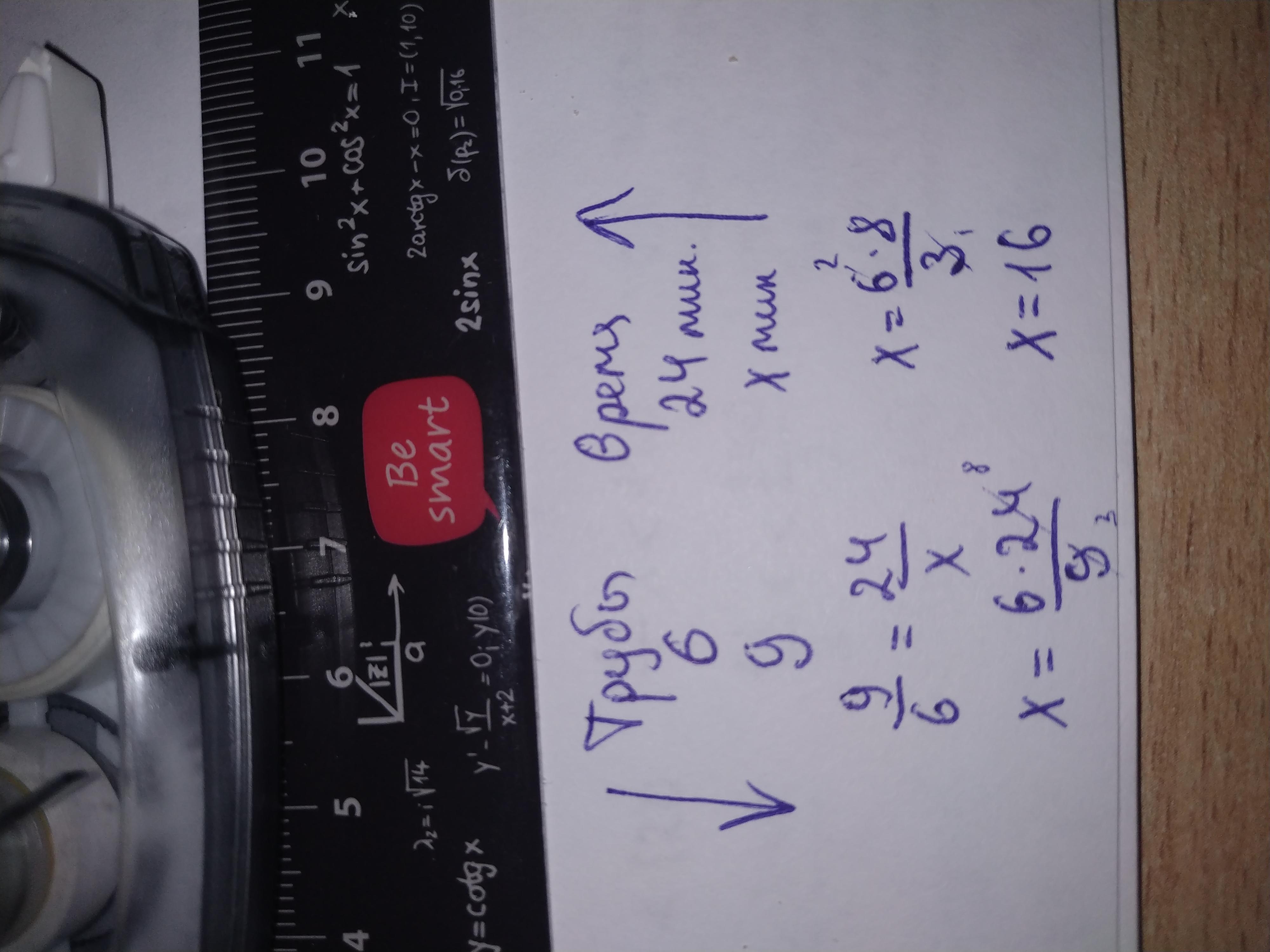 Определите вид зависимости величин и решите задачу с помощью составления пропорции. С помощью 6 одинаковых труб бассейн заполняется за 24 минуты. За сколько минут можно заполнить бассейн с помощью 9 таких труб?