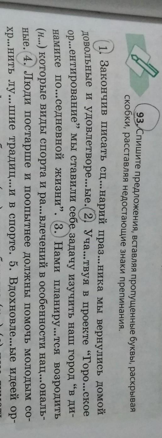 93. Спишите предложения, вставляя пропущенные буквы, раскрывая