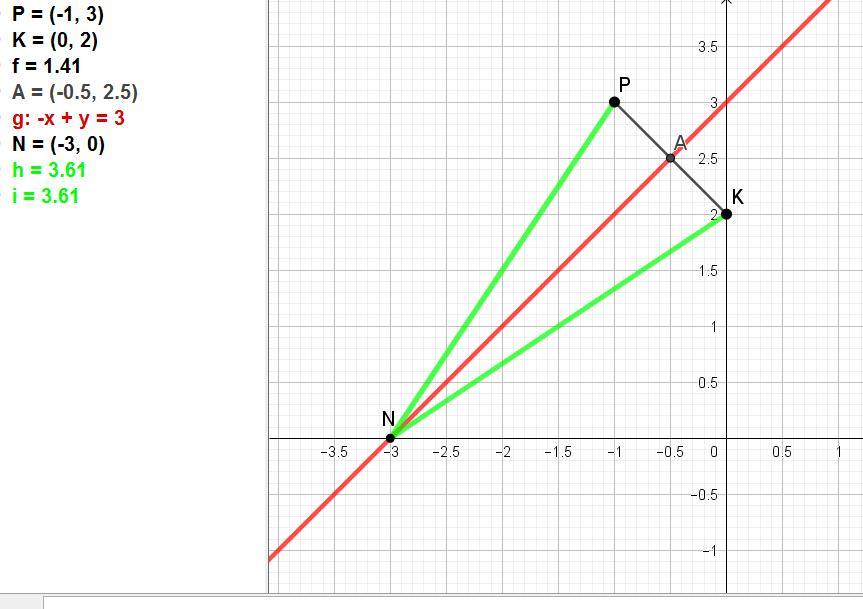 и равноудаленная от точек Р(-1; 3) и К(0; 2), имеет координаты N(x; 0).