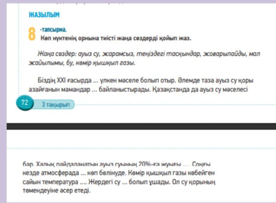 СРОЧНО,ДАЮ 20 БАЛЛОВ!!!!!8-тапсырма.Көп нүктенің орнына тиісті жаңа сөздерді қойып жаз.