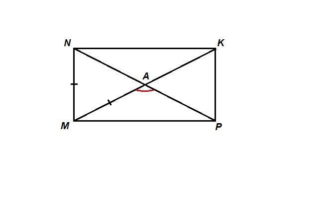 В прямоугольнике MNKP диагонали пересекаются в точке А. Найдите величину