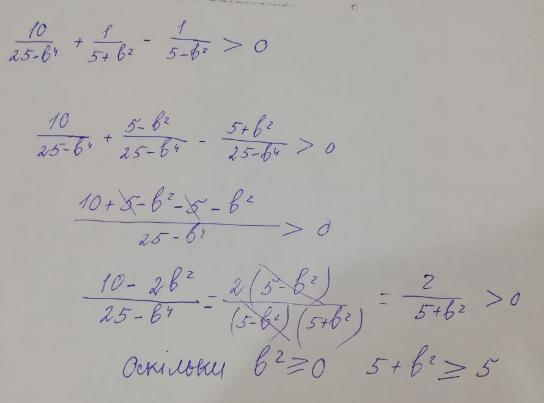 10/ (25-b⁴) + 1/ (5+ b²) - 1/ (5-b²) > 0 - доказать