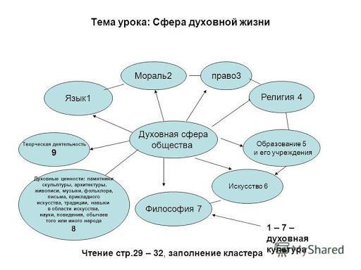 ЯЗЫК ; МОРАЛЬ; ПРАВО; РЕЛИГИЯ ; ОБРАЗОВАНИЕ; ИСКУССТВО ; ФИЛОСОФИЯ
