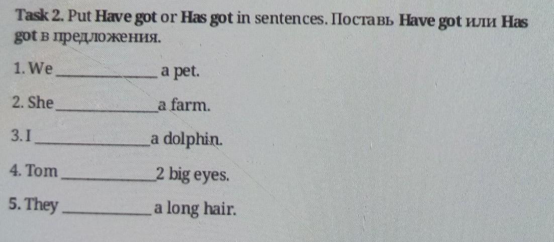 Task 2. Put Have got or Has got in sentences. IlocTa BL Have got YLIH
