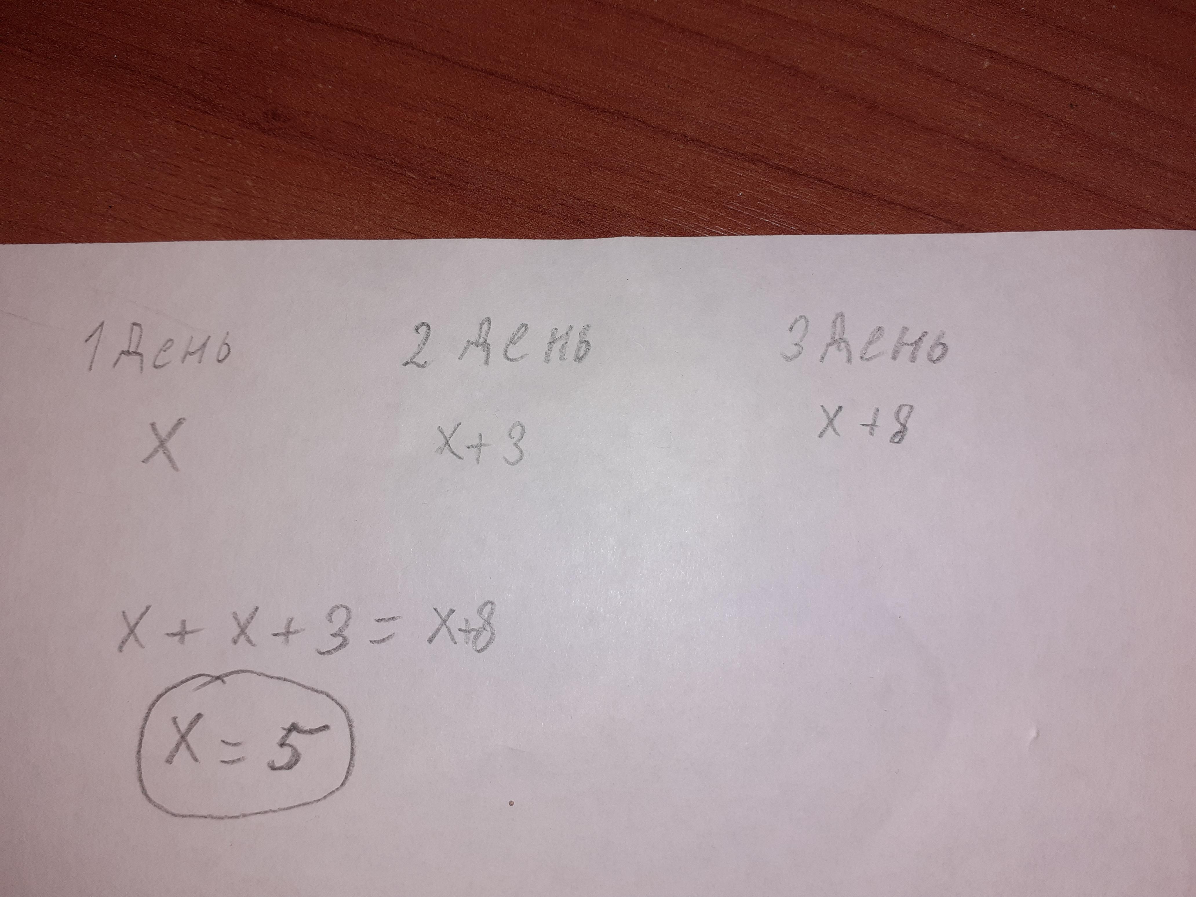она обработала (х+3) га, а за 3 день - (х+8) га Известно, что за третий день обработано столько посевов, сколько за первые два дня вместе, составим и решим уравнение.