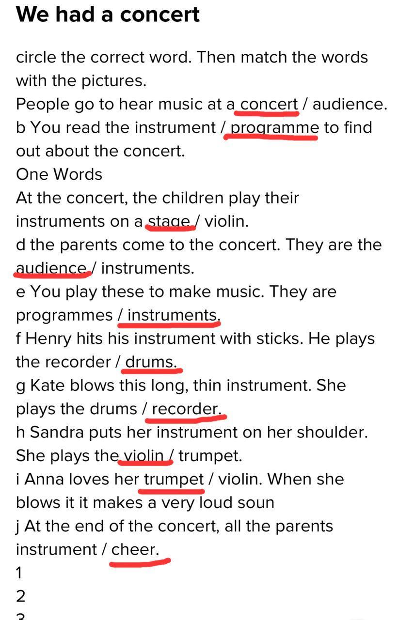 b You read the instrument / programme to find out about the concert.