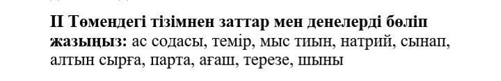 заттар: темір мыс тиын алтын сырға натрий ас содасы
