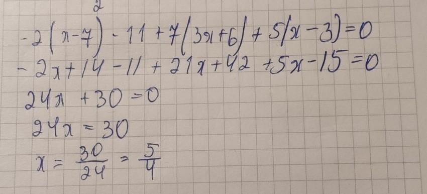 -2(х – 7) - 11 +7(3х + 6) + 5(х – 3)=0