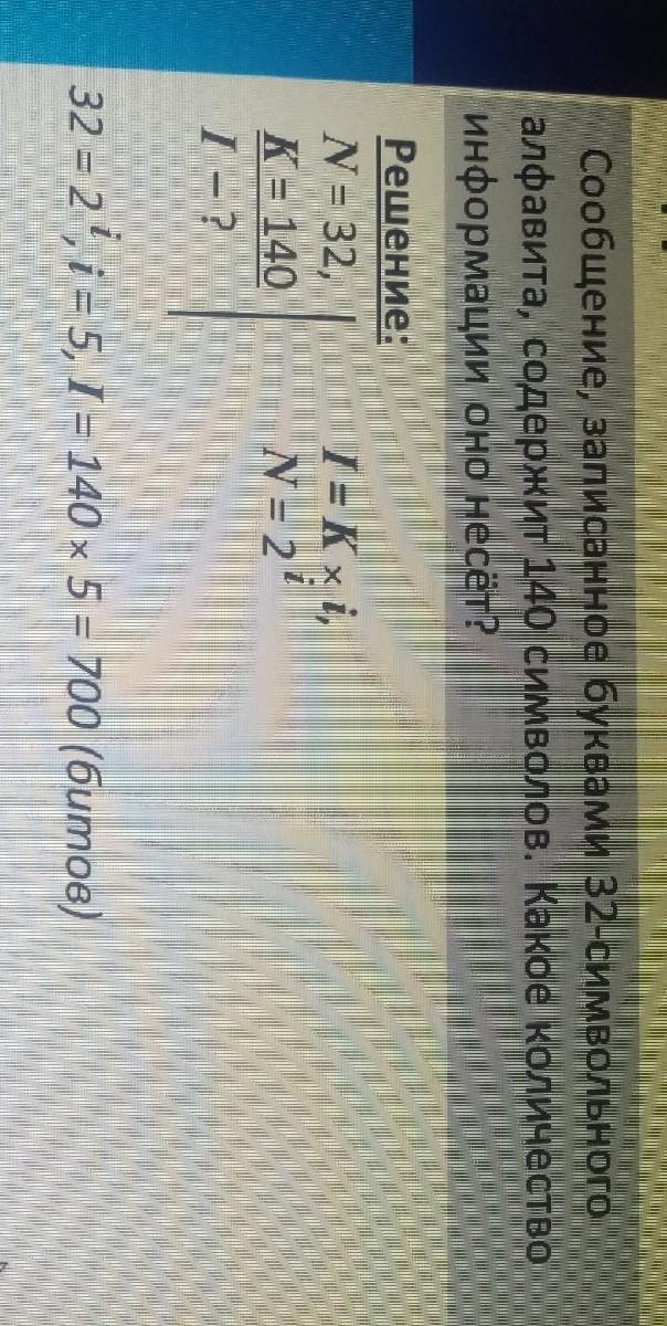 I = K * i = 140 * 5 = 700 бит (87,5 байт).