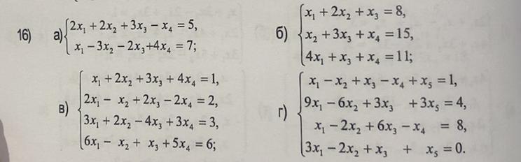 б)Ранг розширеної матриці дорівнює рангу матриці системи(=3), але менше числа невідомих. Система сумісна і має нескінченно багато розв'язань.