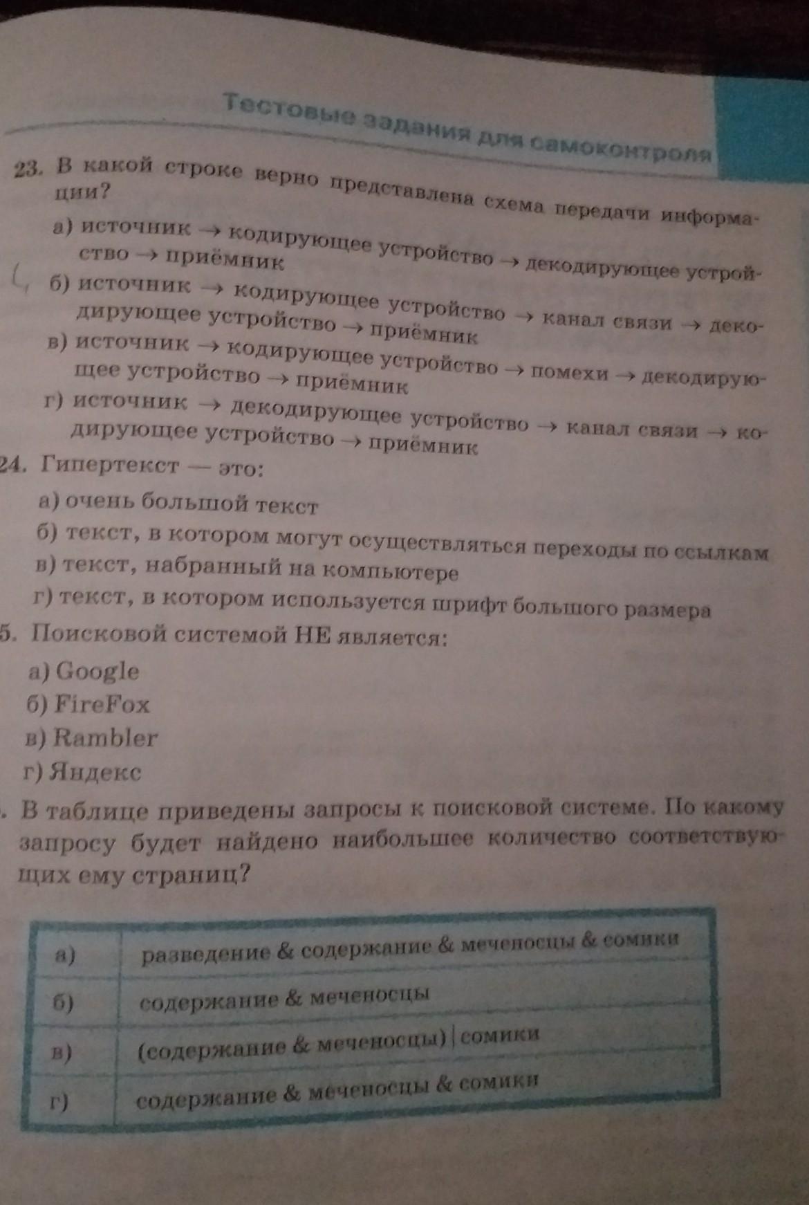 23. В какой строке верно представлена схема передачи информации?