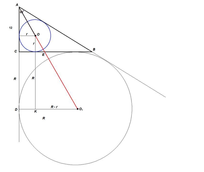 KO₁ = R - r = 6√3 + 6 - (6√3 - 6) = 12