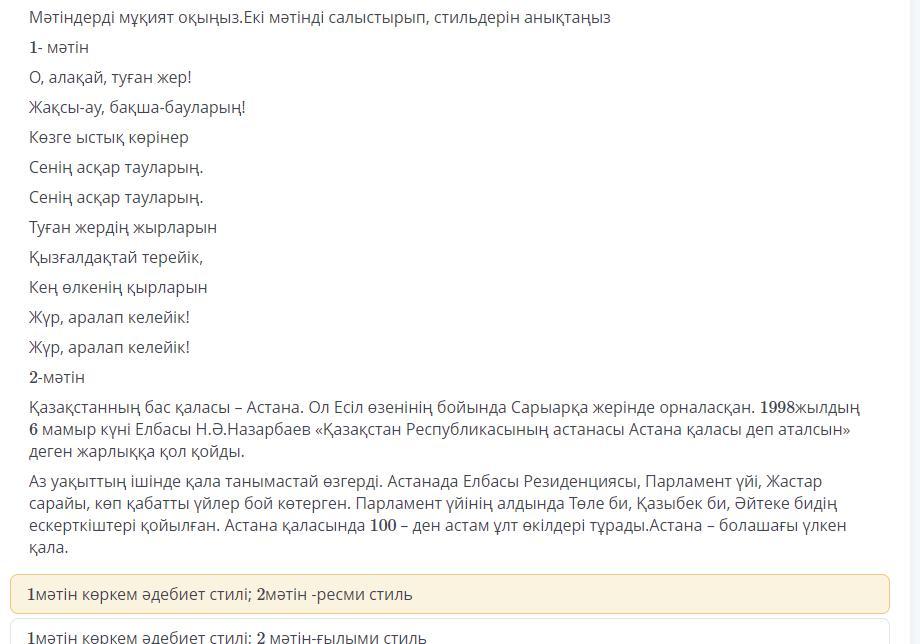 2 мәтін ғылыми стиль болады ал бірінші мәтін көринби тұр