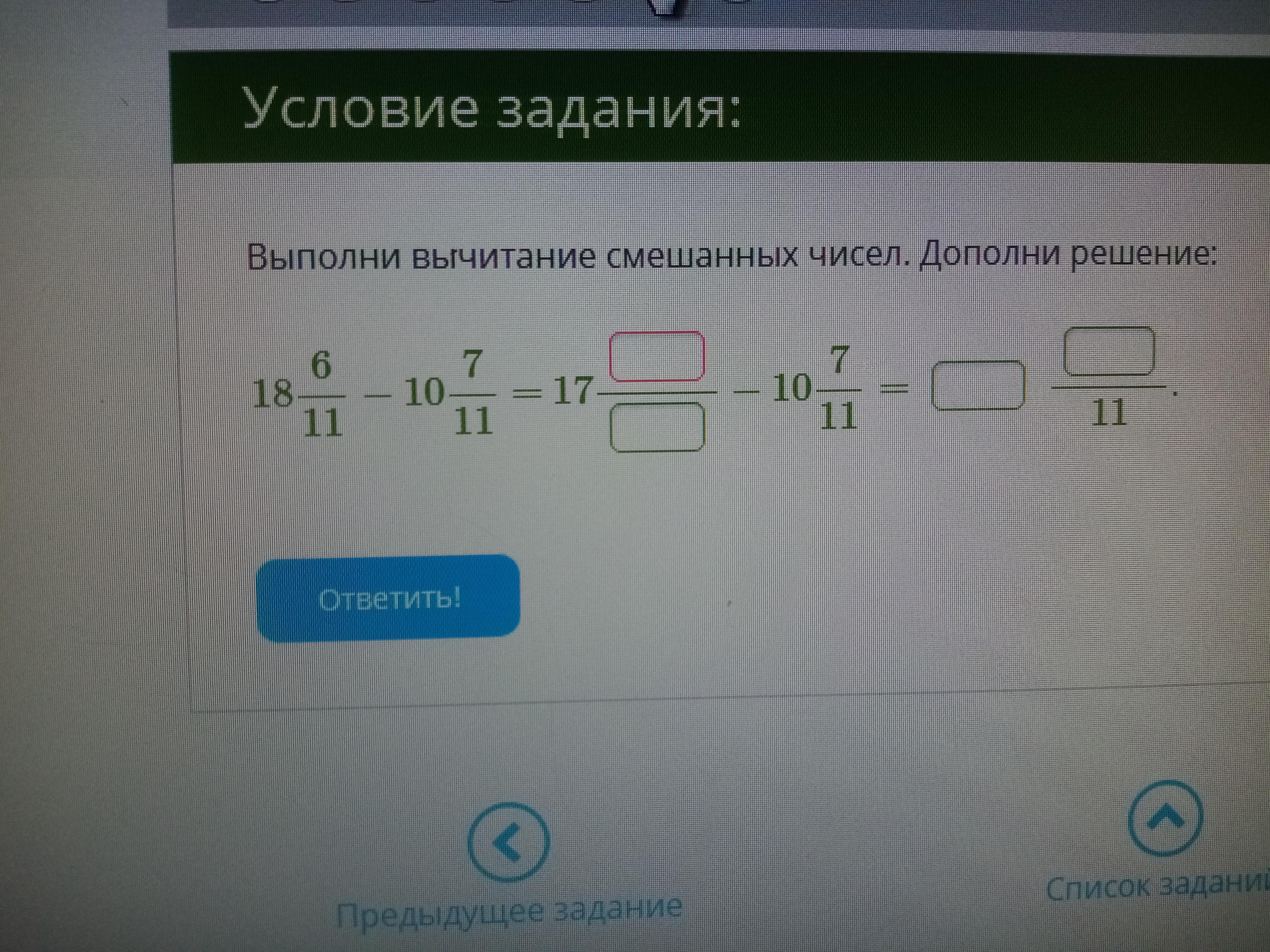 17 17/11-10 7/11 вот теперь мы сможем вычесть. Получаем: