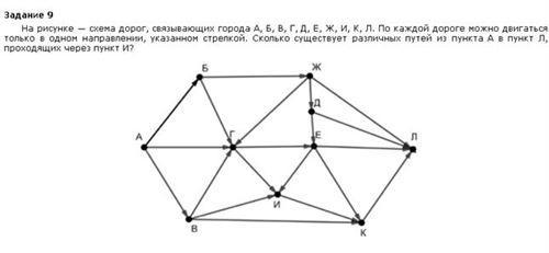 Существует 6 путей из пункта А в пункт Л проходящий через пункт И