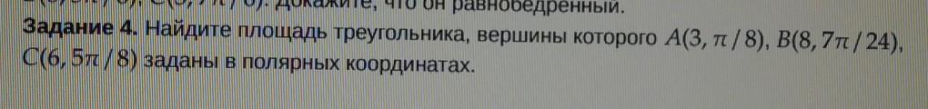 Если перейти к прямоугольной системе координат, то координаты вершин станут A(3,0) B(),C(0,6)