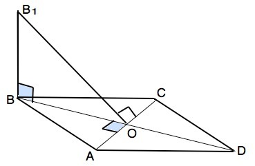 По условию ВВ1 перпендикулярен плоскости ромба, поэтому она перпендикулярна любой прямой, проходящей через его основание В, и ВО – проекция наклонной В1О.