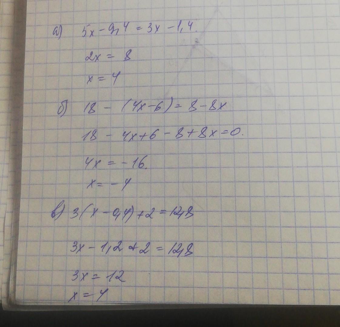 в) 3(x-0,4) + 2=12,8