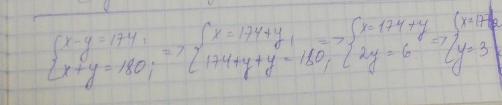 Я решала с помощью систем, один угол взяла за х, а другой за у. Сумма смежных равна 180, вторую строку взяла из условия