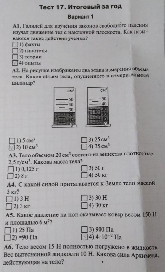 A6-Сила Архимеда равна весу вытесненной жидкости = 10 Н