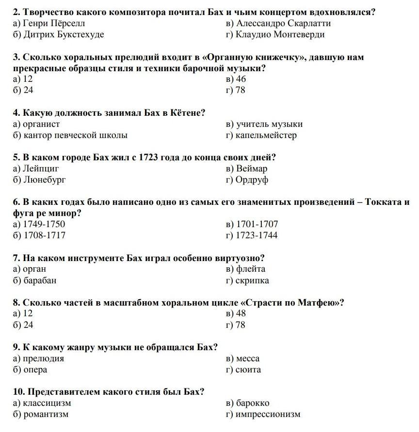 Бах.Тест очень лёгкий Срочно