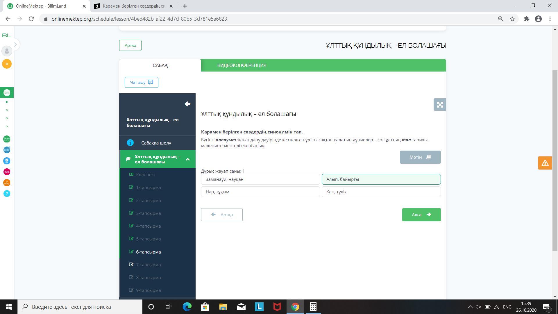 Қарамен берілген сөздердің синонимін тап. Бүгінгі алпауыт жаһандану дәуірінде кез келген ұлтты сақтап қалатын дүниелер – сол ұлттың төл тарихы, мәдениеті мен тілі екені анық. Дұрыс жауап саны: 1 Кең, түлік Заманауи, науқан Нар, тұқым Алып, байырғы