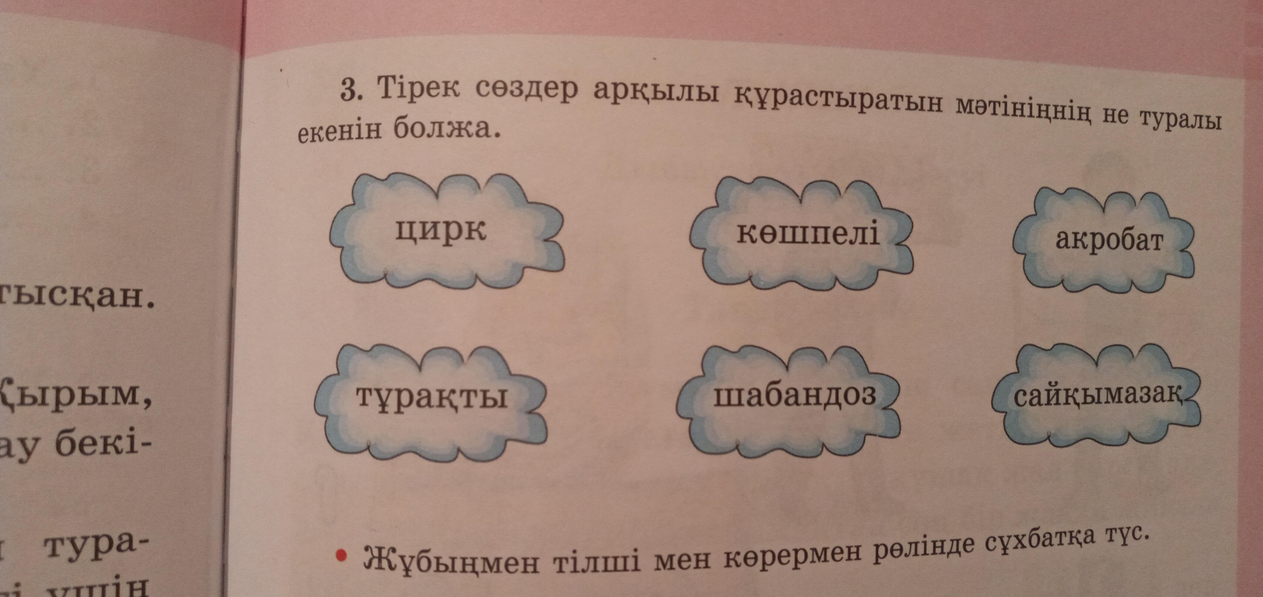 Анам екеумиз демалыс куни циркка бардык.Менин агам шабандоз,ол аттарды жаксы кореди.Биз цирктан акробат,клоундарды кордик,олар оте кызыкты.