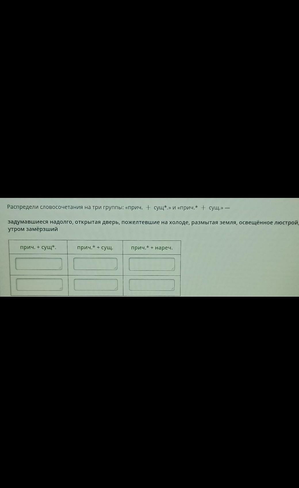 1,прич+нареч 2,прич+сущ* 3'прич+нареч