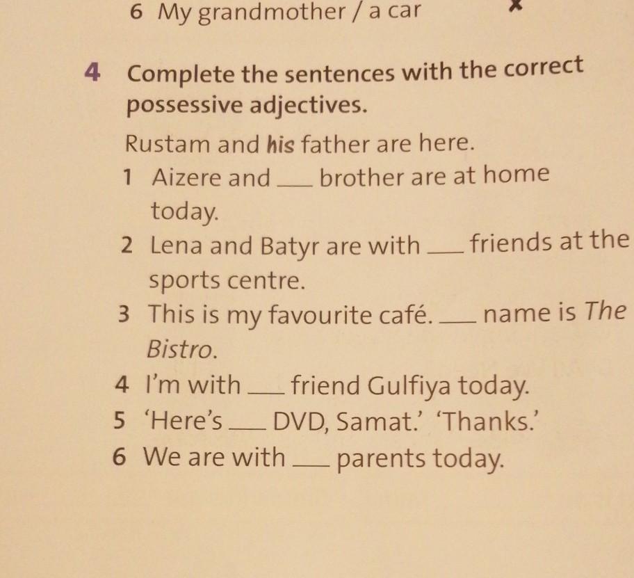 1. Her 2. Their. 3. Its 4. My. 5. Your. 6.Our