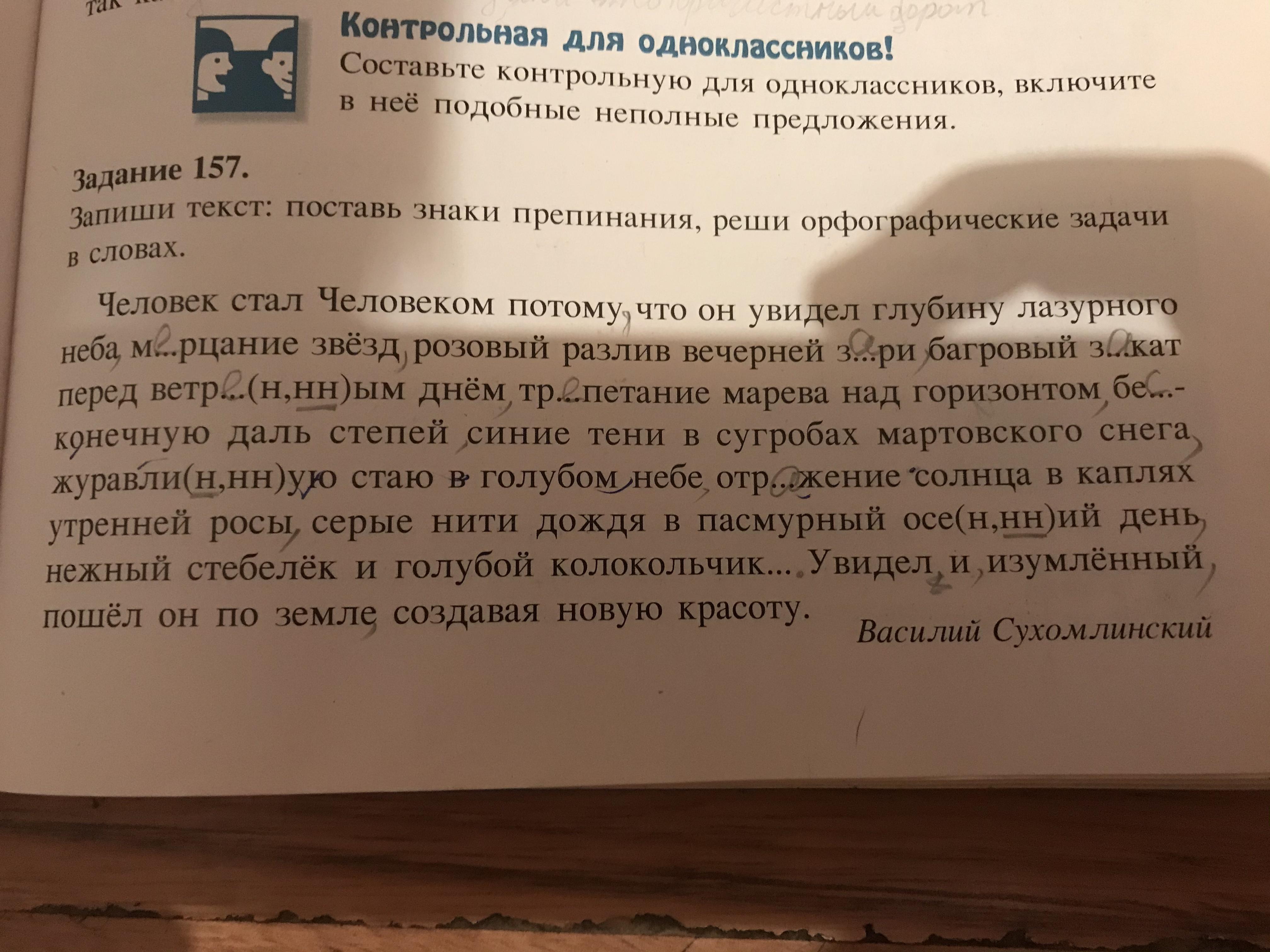 челавек стал Челавеком потому,что он увидел глубину лазурного неба,мерцание звёзд,розовый разлив вечернеи зари, багровый закат перед ветре (н,нн)ым днём, трепетание марева над горизонтом,бесконечную даль степей,сине тени в сугробах мартовскаго снега,журавли(н,нн)ую стаю в голубом небе,отрожение солнца в каплях утренней росы,серые нити дождя в пасмурныи осе(н,нн)ий день,нежней стебелёк и голубой колокольчик.Увидел и , изумёлнный,пошёл он по земле,создавая новую кросоту.