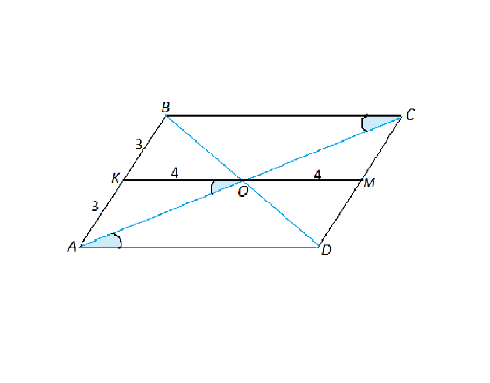 В параллелограмме ABCD диагонали пересекаются в точке O, K - середина стороны AB, AK = 3 см, KO = 4 см. Найдите периметр параллелограмма. Сравните углы KOA и BCA.