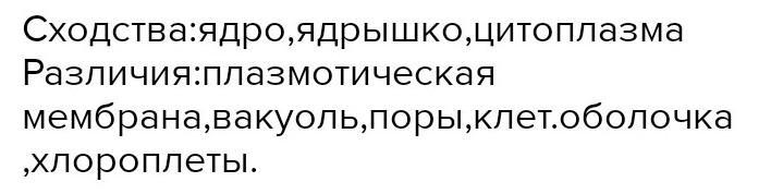 Различия - Имеет большие вакуоли, клеточную стенку и хлоропласты, способна к фотосинтезу