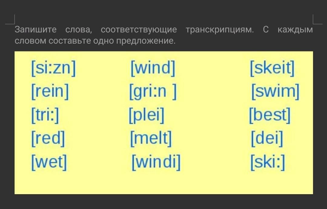 Запишите слова, соответствующие транскрипциям. С каждым словом составьте одно предложение.