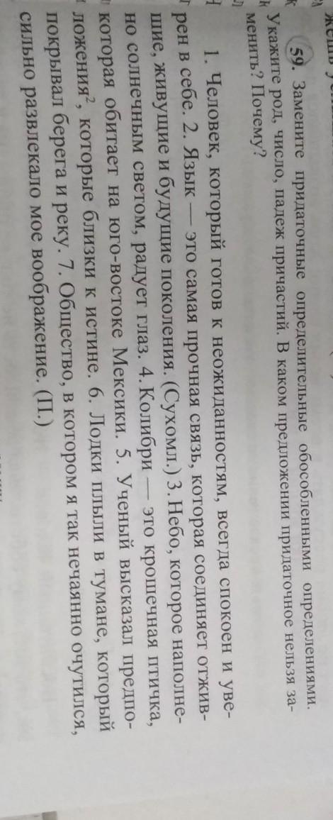 Замените придаточные определительные обособленными определениями. Укажите род, число, падеж причастий. В каком предложении придаточное нельзя заменить? Почему?