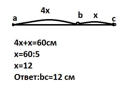 длина отрезка АС равна 60 см. Точка В взята на отрезке AC Так что длина отрезка AB в четыре раза больше длины отрезка BC Найдите длину отрезка BC