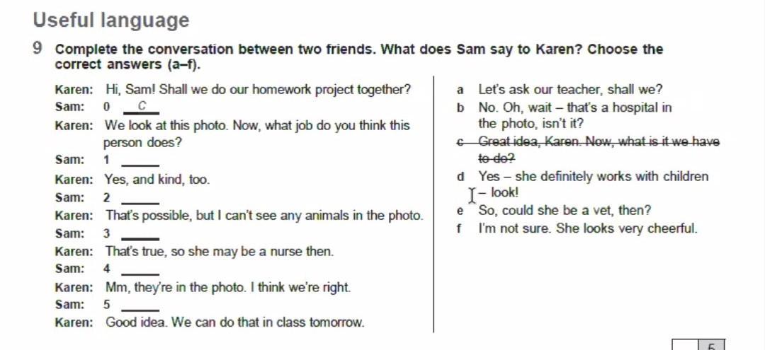 complete the conversation between two friends. What does Sam say to Karen? Choose the correct answers.