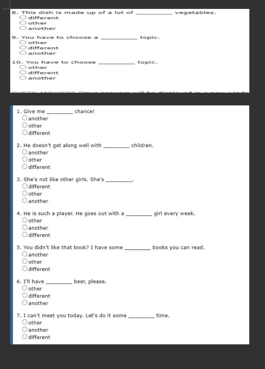 В предложениях где есть артикль "A, AN", нужно выбирать OTHER