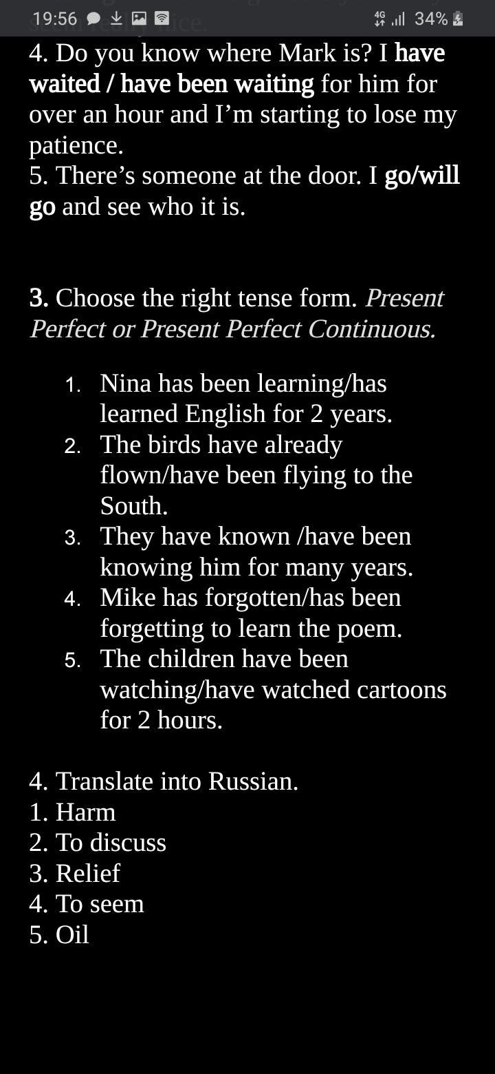 3.)1-has been learning, 2-have already flown,3-have been knowing,4-has forgotten,5-have been watching